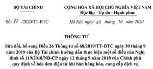 Thông tư 88/2020/TT-BTC: Sửa đổi Thông tư 68 về hóa đơn điện tử